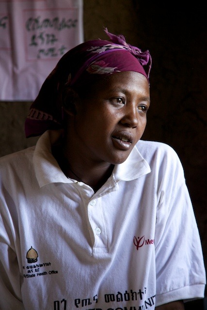 In addition to her other duties, Felekech is also a Mercy Corps Volunteer Community Health Worker. She teaches the women of Fuchucha village about health education: sanitation, vaccination benefits, and overall maternal health. The village women learn how to better organize their homes, balance their meals with various nutrients, and how to store their food to prevent contamination.